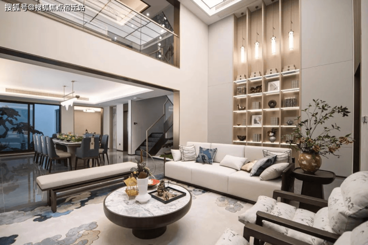 摆上一组沙发,或静坐闲读,或花园晚餐,或邀三五好友欢聚,都有一种悠然自得的安定感。长面宽、短进深格局 来到室内,一楼层高约3.4米、面宽约7米大横厅霸气十足,搭配大面落地窗,阳光清风肆意涌入,将室内映衬的一片明亮,毫无阴影死角。
