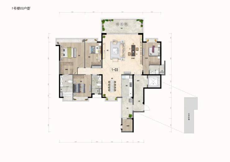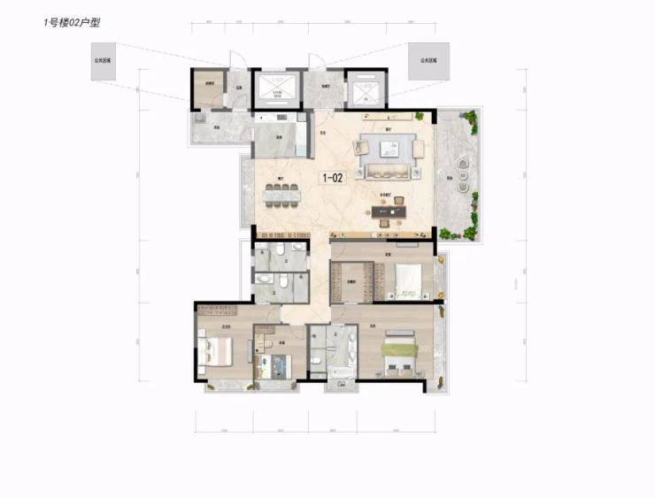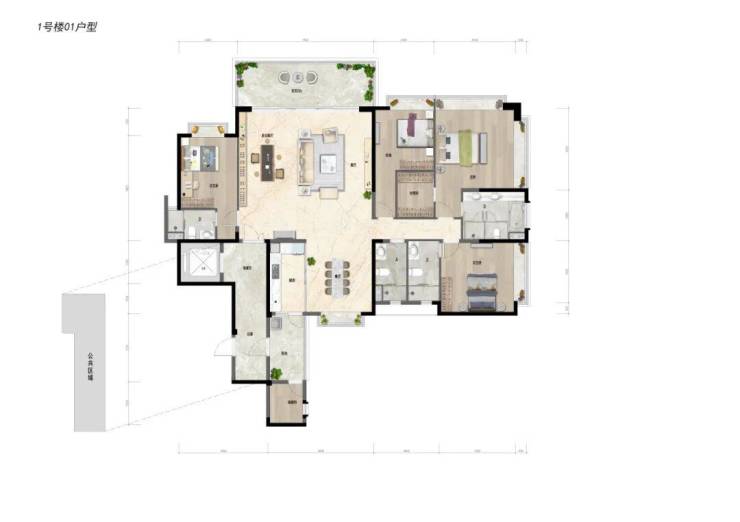 约143㎡四房两厅三卫:豪华双套房,阔绰四房