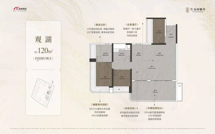 项目主推建面约98-149㎡全南向湖居四房,实现户户朝南、大开间、高得房率,全面提升居住舒适度。