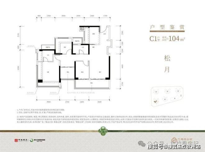 主力户型是104㎡的产品,带10.2㎡的阔景阳台,双阳台、双设备平台设计,加上主卧、书房L型阔景飘窗,户型使用率颇高。
