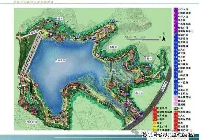 项目南边是民悦公园和民治水库,目前能看到民治公园建设工程方案设计图流出