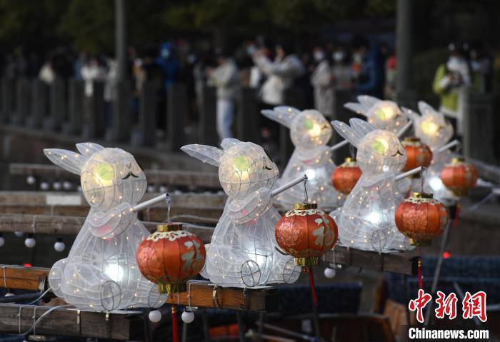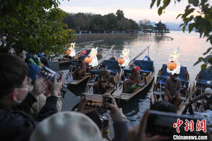 一只只憨态可掬的福兔,提着小灯笼坐在船头……30艘新春特别款兔子灯“福气船”亮相西湖。