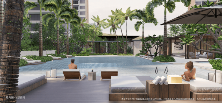 项目采取一轴(度假七境)、一环(600米雨林康养环)、九大院落(禅意雅趣)的归家动线尊享设计,入户采用双大堂设计,赋予居者尊崇的格调生活及归家仪式感。