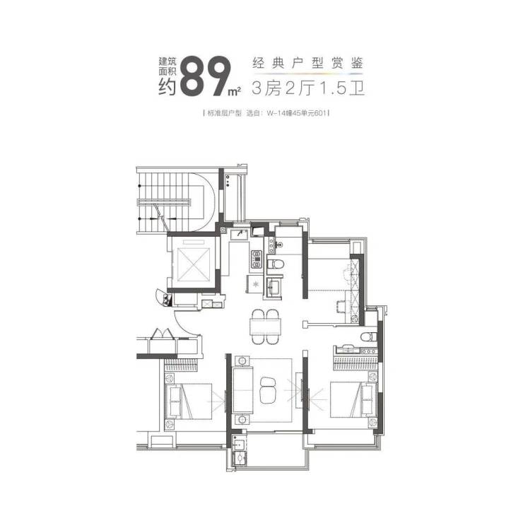 感,收纳合理。大横厅设计,连接南向大阳台,视野开阔!卫浴三段式设计,干湿分