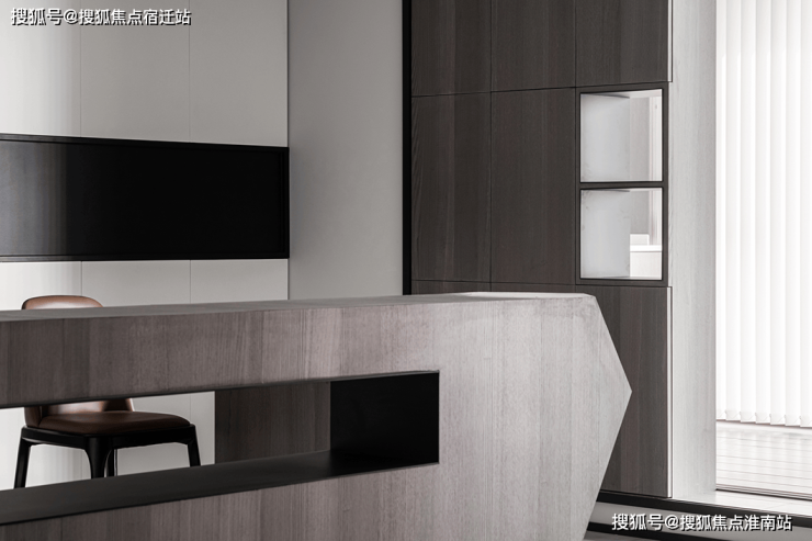 设计师将厨房拆分为中西厨,西厨运用了岛台和餐桌一体化的设计,白色岩板的岛台、胡桃木餐桌配以皮质餐椅,不同材质之间的碰撞迸发出更具美感的火花。
