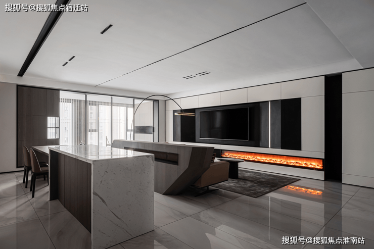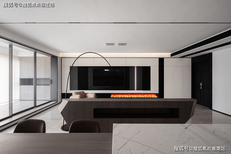 黑白配色的电视背景墙将壁炉纳入这块空间,使得本身冷色调的家瞬间温暖而治愈。