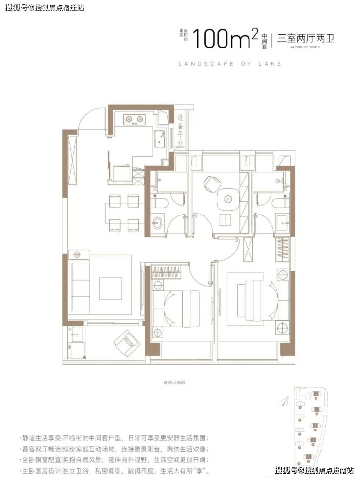 建面约100㎡3房B户型(中间套)