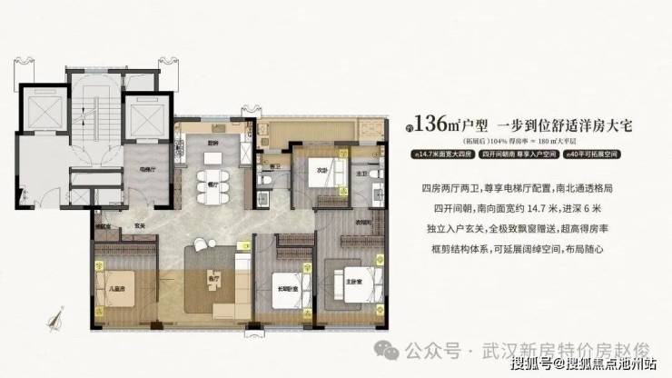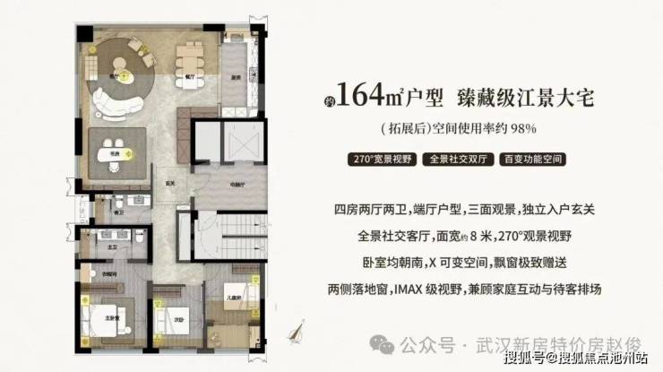 建面约 134-191 m²全大户型配置,2T2户纯板式结构,择邻而居,业主圈层品质与汉口、武昌滨江顶级豪宅形成价值对位