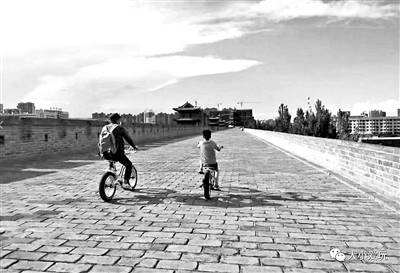 大同古城墙骑行,是不少亲子游大神们的超级推荐!可以现场租车,单人、双人、四人自行车都有,城墙上非常宽阔,还能一览古城内外风景,娃过足了骑车瘾,大人也很放松解压。