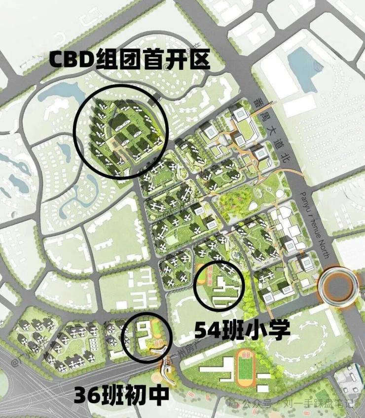 进度最快的是 CBD 组团内的 54 班小学(里仁洞小学改扩建)、36 班初中(新建),已官宣引入番广实验教育集团(广大附中番禺实验学校管理),与越秀大学城和樾府配建学校同源,今年九月已经开学,正式开放1年级