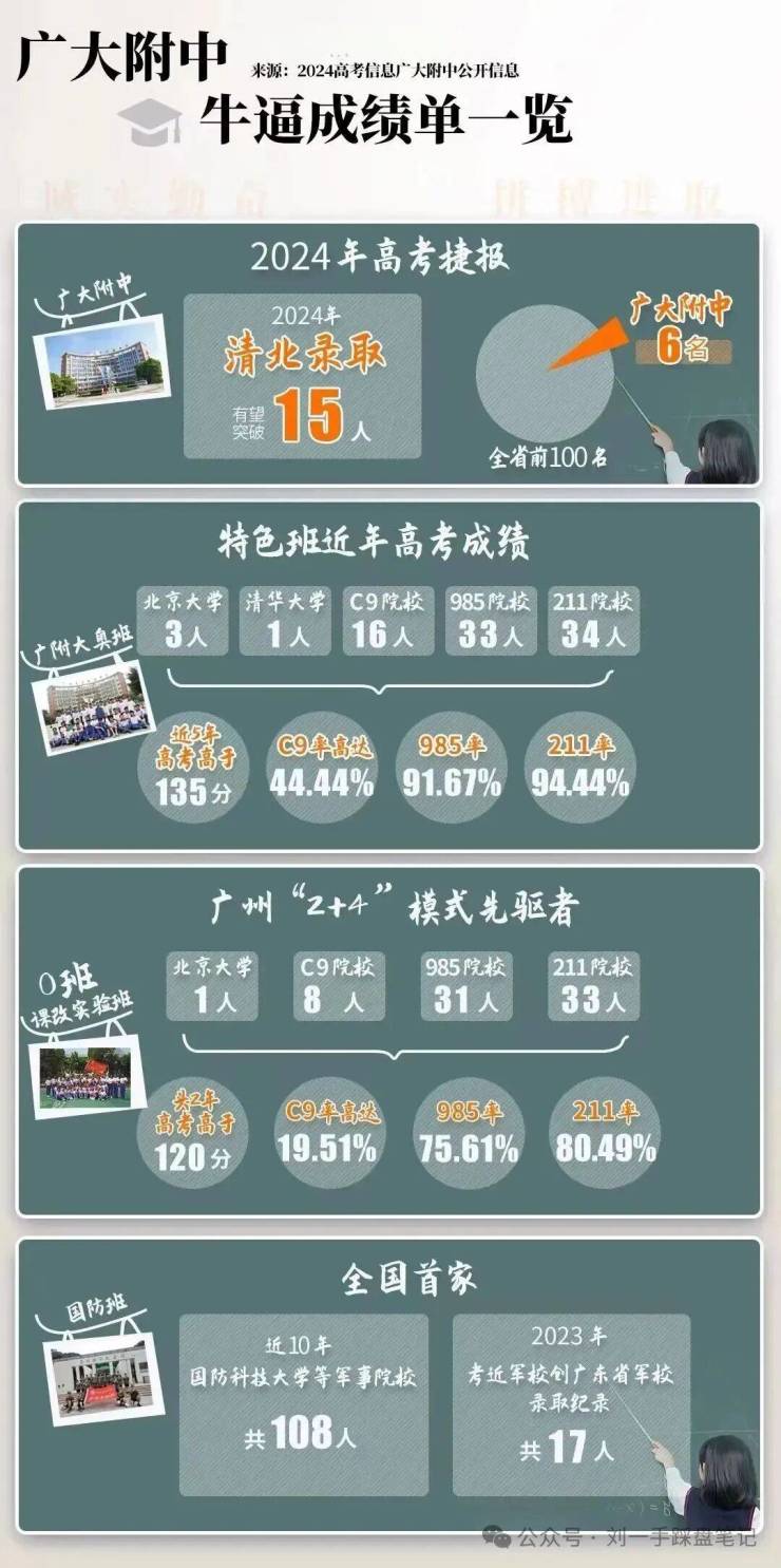 广附的实力无需多言:集团综合实力广州前四,24 年高考清北录取 15 人、双一流录取率 60%,今年中考金广附、黄广附出了 788 分双状元,夺下广州中考双状元;