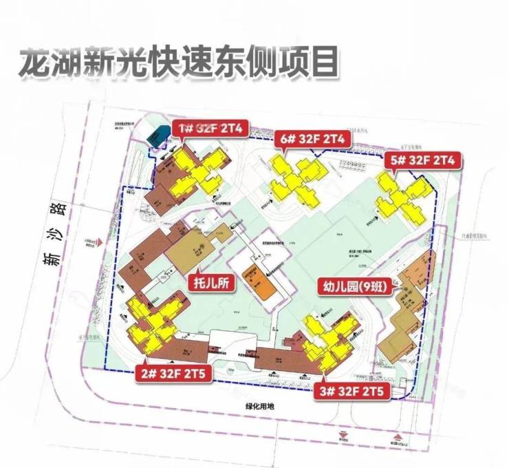 项目将建5栋32层高的住宅楼,围合式布局。