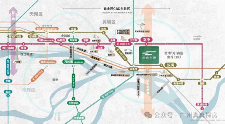 城市主动脉:临广州经济主干道黄埔大道、临江大道、中山大道、广州环城高速,贯通珠金琶CBD核心