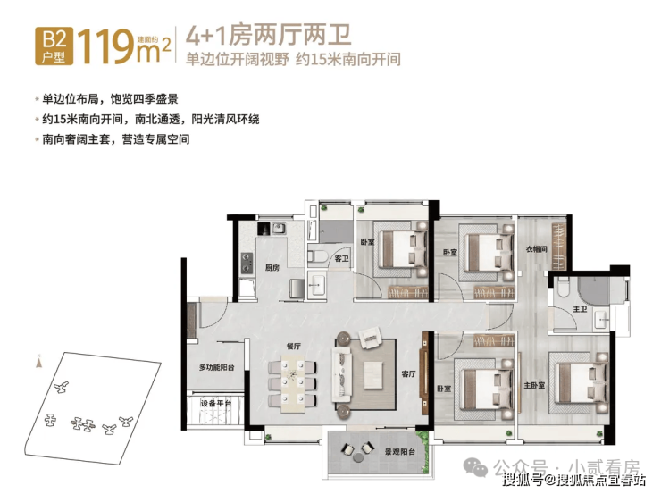 【119㎡4+1房2厅2卫】单边位布局,15米南向开间,南北通透,改善户型首选,低总价换房天河