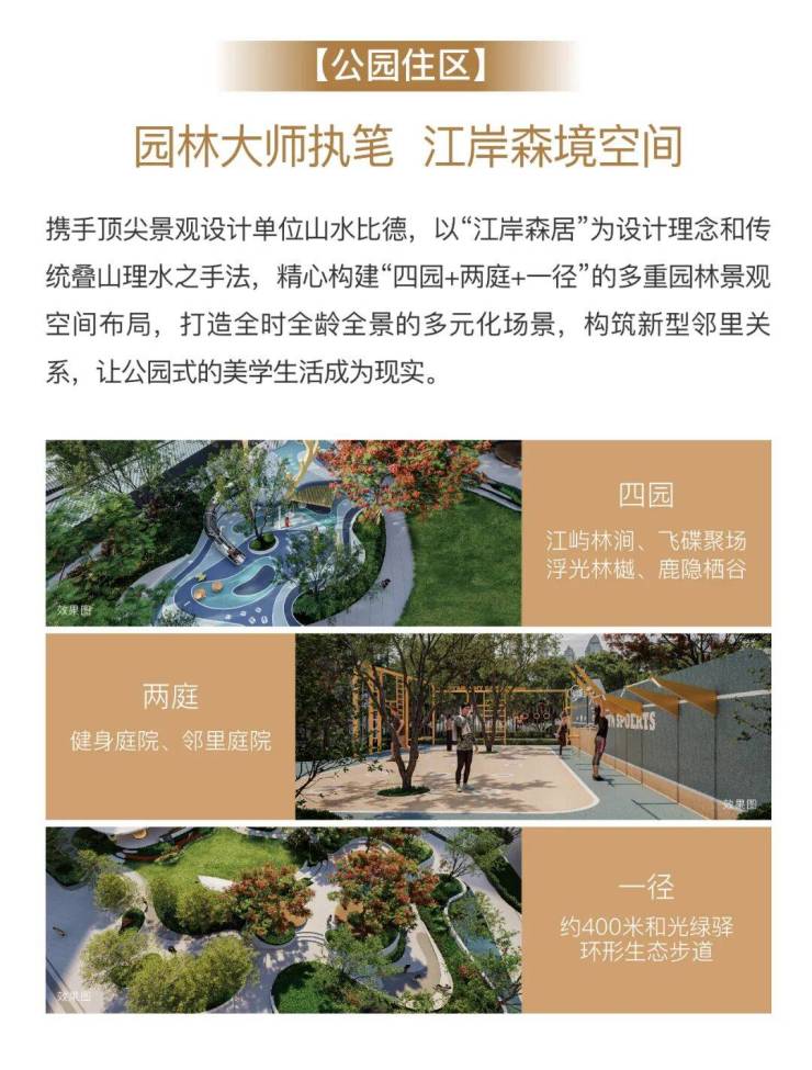 3. 35%绿化率,江园双景,推窗即公园,步行即达滨江步道。