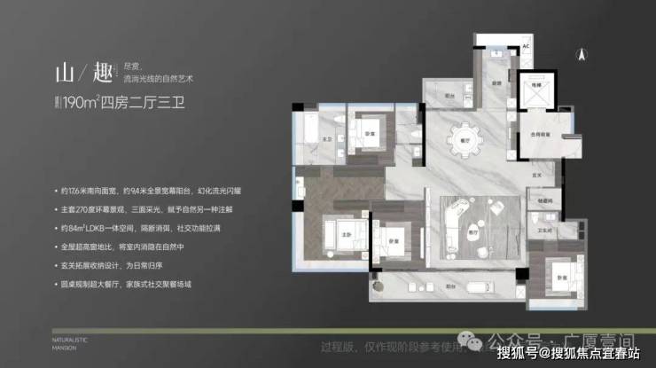 为了充分发挥出项目景观面上的优势,并符合高端改善人群的居住需求,越秀·观樾经过多番研究,不惜成本,为了自己更大化将景观与居住舒适度相融合,结合原有地势天然差高作了抬高,采用南北对流纯板式+小高层设计。近38%的超高窗地比+双层LOW-E玻璃,不仅还原了窗外自然景色,尽可能让美景、阳光到访。