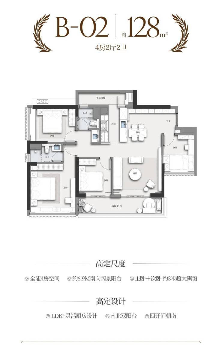 中旅天宸府占地约1.4万㎡,体量不大,共规划有4栋44-46层的超高层住宅,现在主要在售的是C栋 89-144平,三房-四房,2025年底收楼