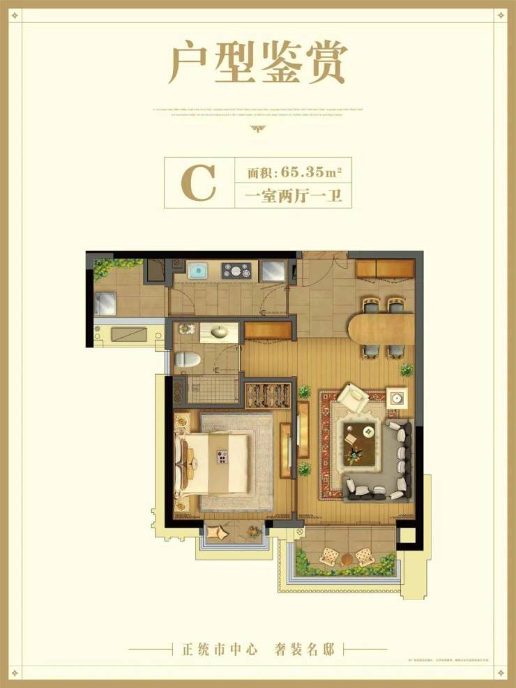 C户型:建筑面积约65.35㎡1房