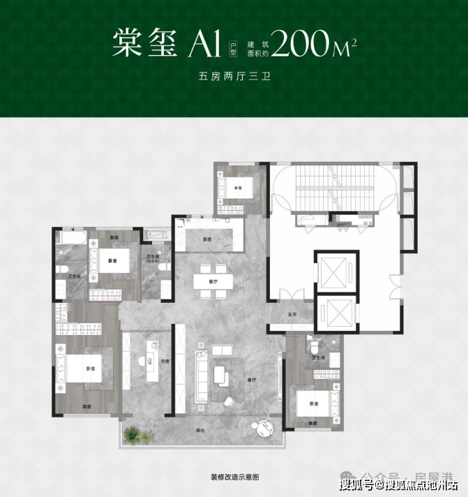 具体户型图也随之流出,包括建面125㎡四房、143㎡和200㎡五房三种户型,全部为新规产品。