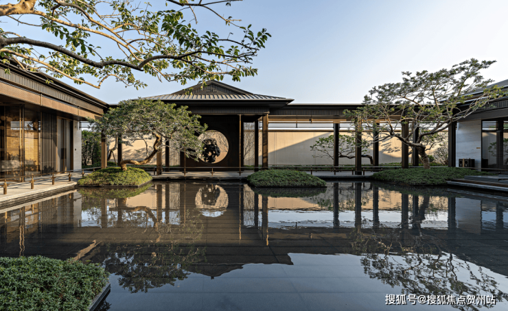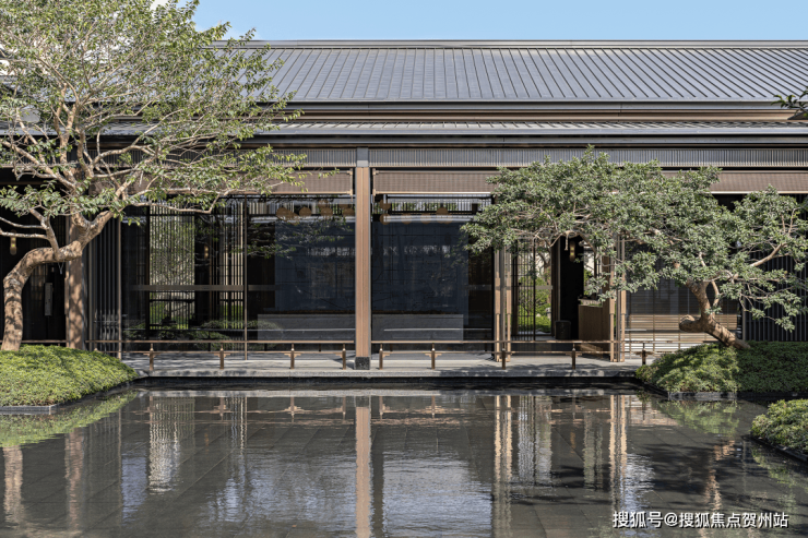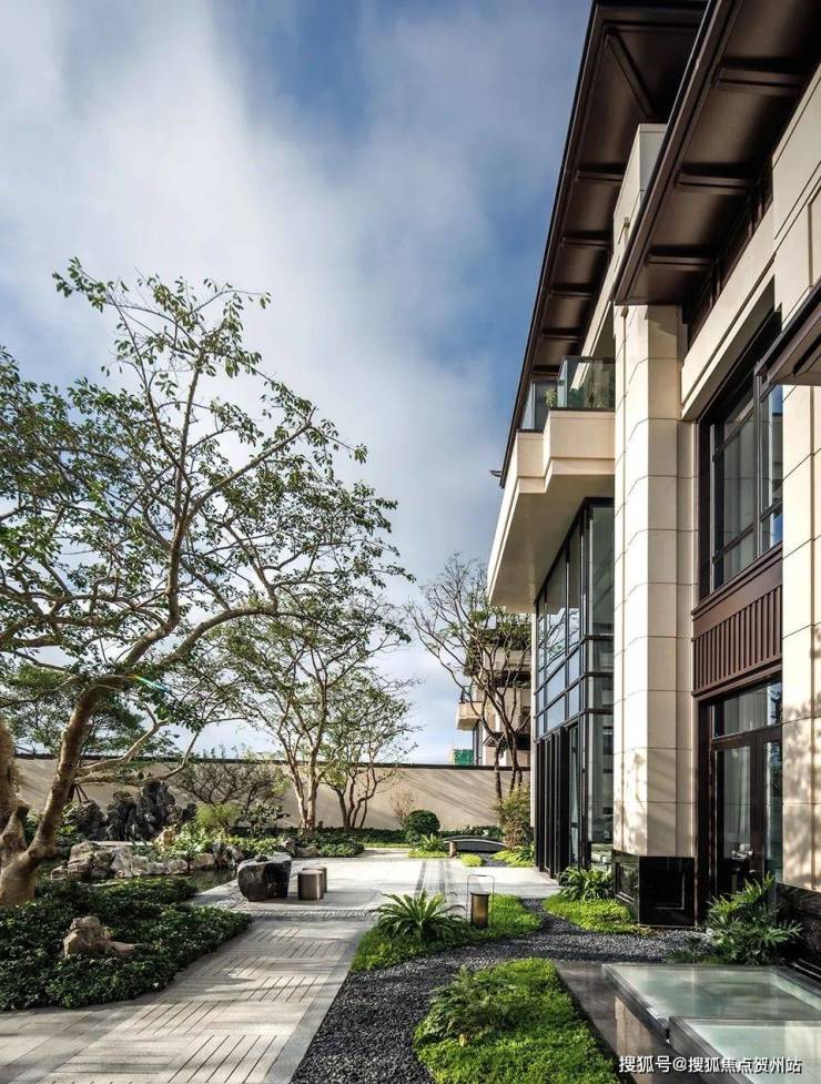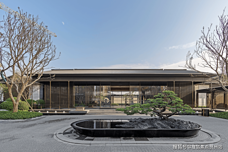 而华发院子秉承着华发向来注重产品通透、采光好的理念,屋身选取石材、真石漆搭配大面积玻璃面造型,屋顶选取庑殿顶设计,并运用铝板材料,整体典雅大气又保障了光照和对流。