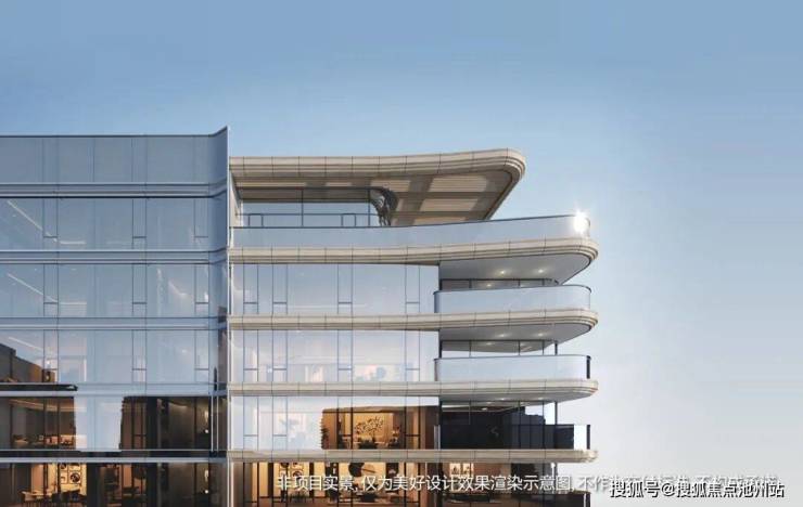 建筑立面以石材、铝板线条、玻璃为主,局部涂料。多层次的白世茂石材,呼应钱塘江两岸堤坝的厚重感;反射比低于 0.16 的low-e玻璃,突出轻盈质感的同时,提高隐私性,降低能耗;层间采用白世茂石材搭配铝板,石材切割运用双曲面倒弧工艺。