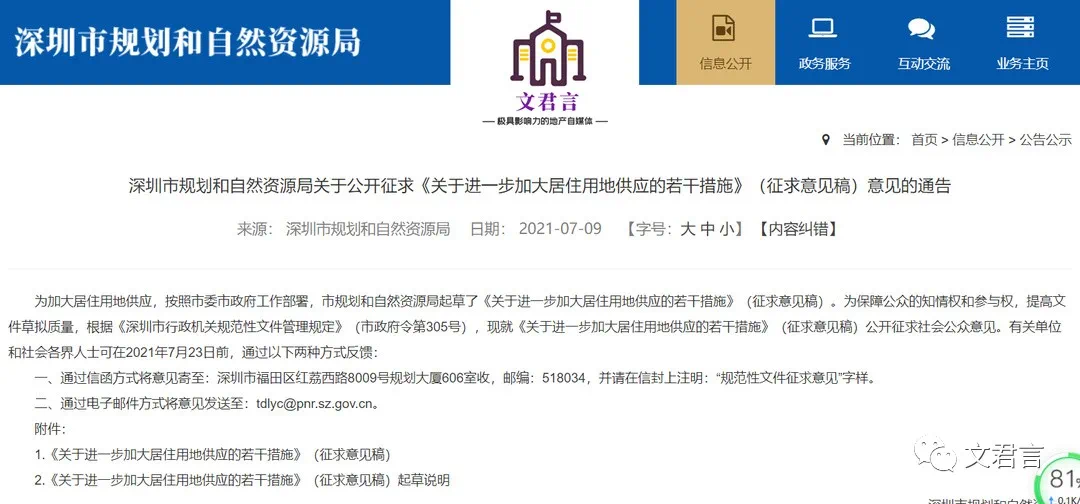 同日,深圳还发布关于《加大居住用地供应的若干措施的(征求意见稿)》,该意见稿提出,将明确居住空间保障目标、优化居住用地结构布局、提高居住用地开发强度、加大新增用地保障力度、扩大租赁住房用地供给等15条措施。