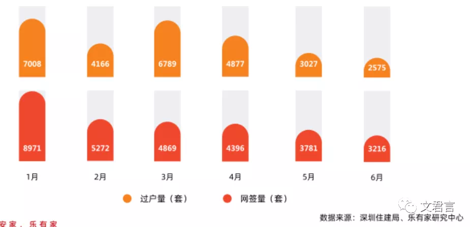 来自乐有家研究中心数据显示,以1月为时间分割点,一手住宅成交量出现明显下跌趋势,6月直接跌破3千套。
