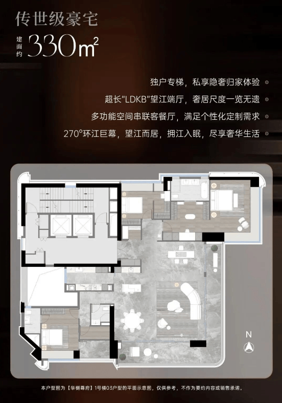 琶洲樾华樾并非传统意义上的大盘,而是一个高度聚焦、精准定位的高端改善项目。整个小区仅有一栋住宅楼,总户数96户,主力户型从248㎡起步,最高达330㎡,全部为大平层产品。在寸土寸金的琶洲核心区,这种“少而精”的开发思路本身就已足够稀缺。