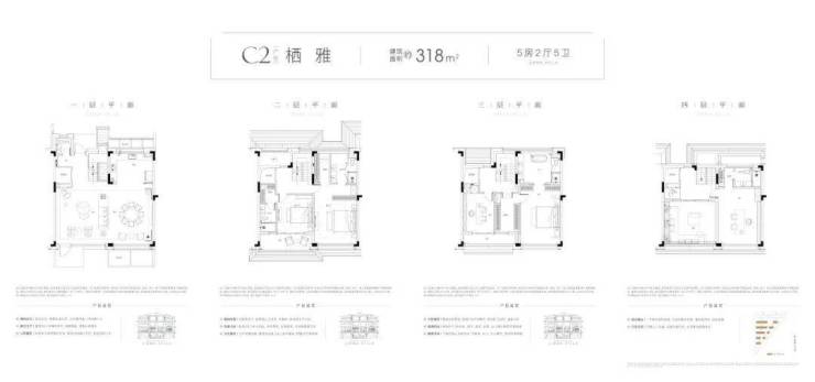 ▲排屋C2户型图|建筑面积约318m²