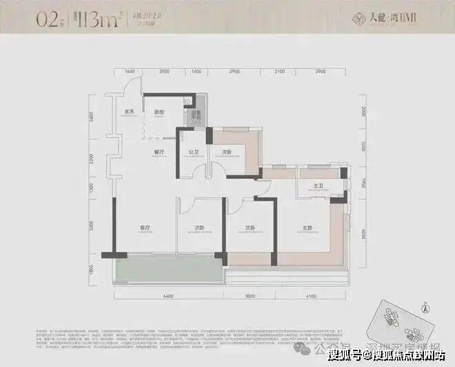 户型为113㎡四房114四房和139㎡五房约290套,2栋100米内30层住宅,2梯5户,其中主力为113㎡四房,整体以朝南及西南为主,有两套朝东北面向金众。