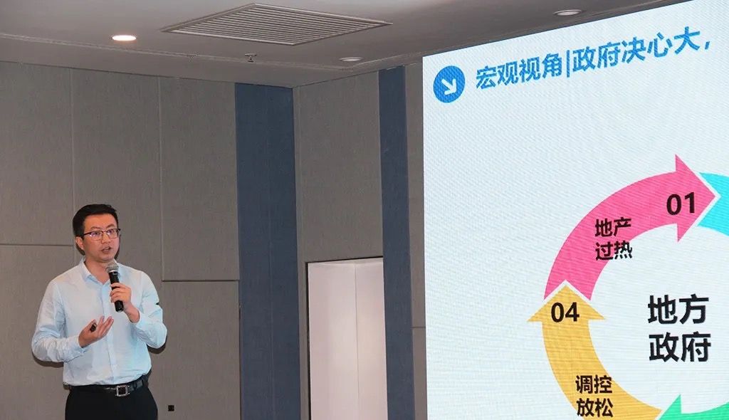 明源云陕西公司解决方案中心负责人张聪现场进行了《研判政策大势 探索破局之道》的主题分享。在详尽深度的对当前的政策、市场、经济大环境做了分析后表示“未来十年整个房地产行业还是长期向好”。