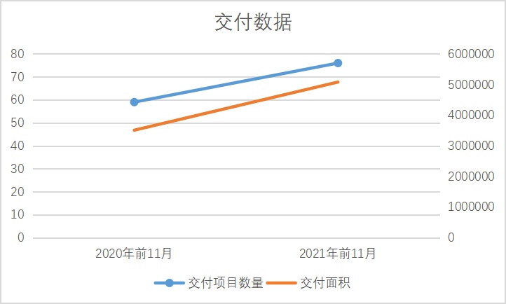 2021年前11个月,中国奥园在深圳、佛山、苏州、扬州、宁波、徐州、泉州、合肥、青岛、沈阳、昆明、南宁等累计交付70余项目,同比增长近30%;交付面积超500万平方米,同比增长45%。