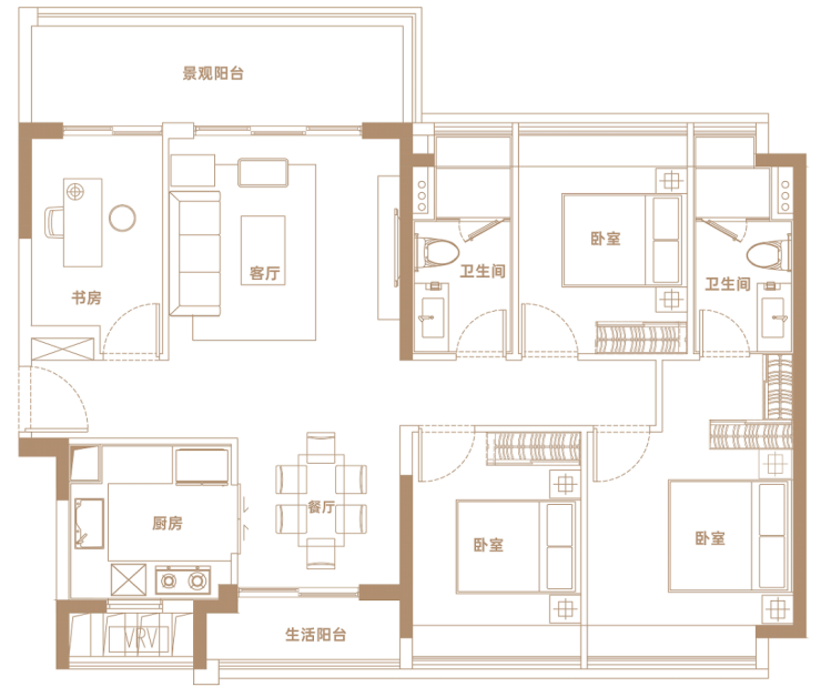 ✨【102㎡户型】南向纯四房,视野开阔,可南向俯瞰地块三中央园林景观,三开间朝南四房设计,舒居四房。