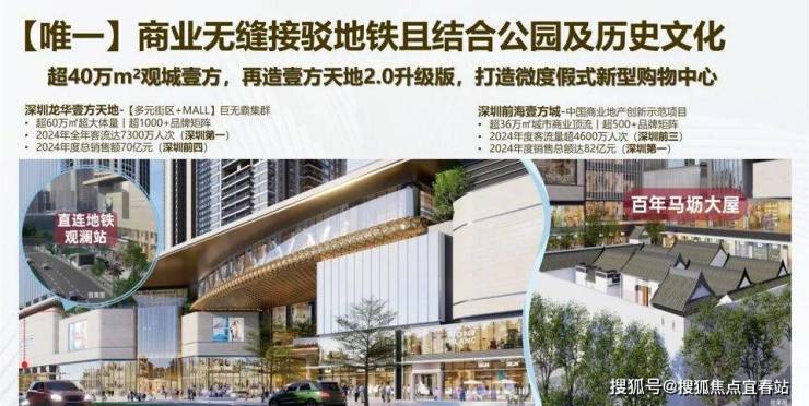 鸿荣源观城作为观澜CBD综合体大盘,从建设初期就一直广受关注,迭代升级的壹方天地2.0版本,集超40万㎡一站式观城壹方商业、3所全龄段公立学校、5大生态公园、三甲医院及甲级写字楼集群于一体,以全维配套矩阵重塑区域价值,打造深圳西部醇熟生活新范本!