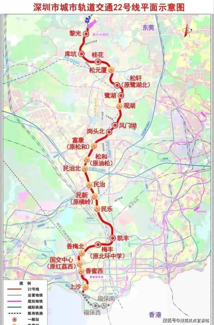 22号线鹭湖站在建,始于龙华黎光站,途经龙岗区,终于福田上沙站,开通后到福田仅需45分钟。