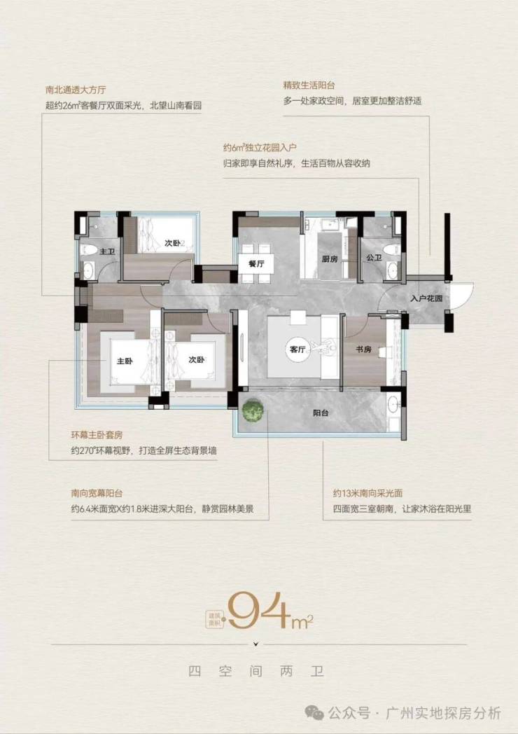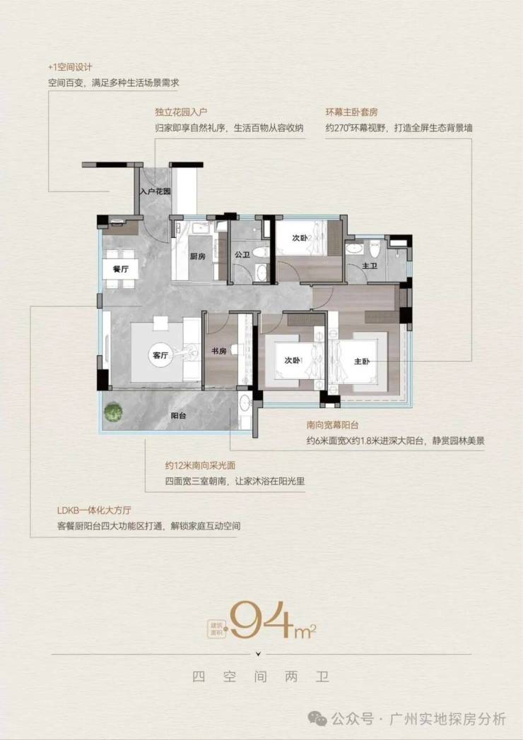 高层住宅:建面约72-94㎡三至四房,户型设计注重实用性和灵活性,如72㎡户型实现三房两厅两卫,94㎡户型预留270度双边采光边厅,南北对流,采光和通风较好。