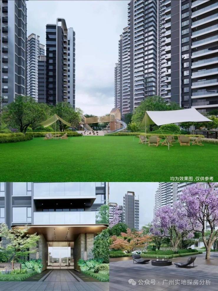 2、低密宜居:容积率仅为2.17,相比老黄埔其他旧改项目(容积率多为5-6),居住密度低,楼间距宽达50-88米,视野开阔,私密性好,居住环境更舒适。