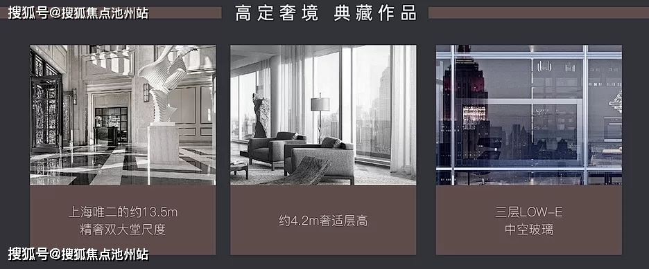 大堂挑高达13.5米、4.2米奢适层高、3层中空lowe玻璃;玻璃幕墙天际景观体验。