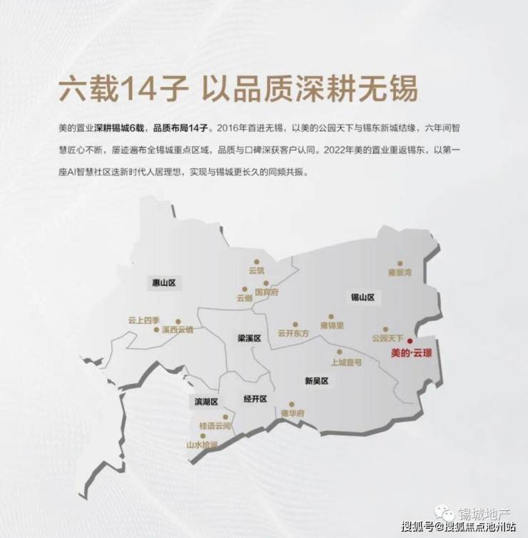 美的置业深耕无锡6载,品质布局14子,收获约9000户业主信赖和赞誉。2016年首进无锡,以美的公园天下开篇,六年间智慧匠心不断,屡迹遍布全锡城重点区域,品质与口碑深获客户认同。