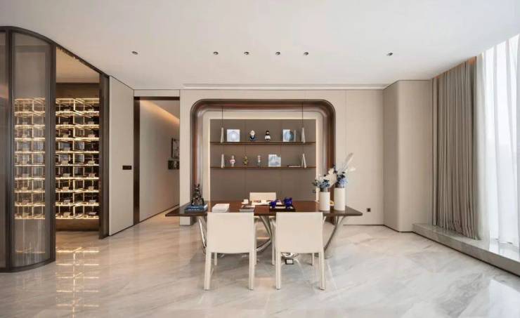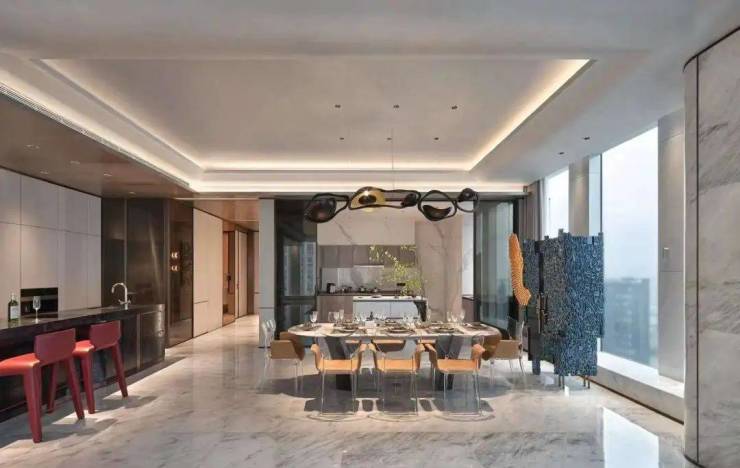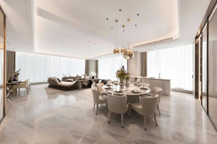 大师作品让从地段上的地标升级为品质上的地标。举一个重要的数据,大师们在融泰云臻约400方的黄金面积段中,拿出约150方来做客餐厅,动区面积达到了60%以上,对于「新钱」们兼顾商务社交和自用属性堪称完美。