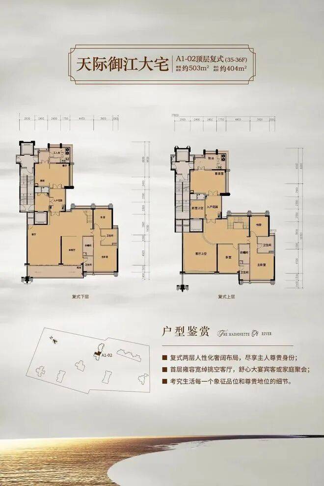 楼王华玺:A6栋1栋约32层高的板式高层洋房。四梯两户,户型面积约478㎡的超奢华五房户型。与B11同为楼王单位,户户南北通风对流,采光景观极佳,一线无敌江景;每户均特设私家入户花园,超大开间,超大阳台。