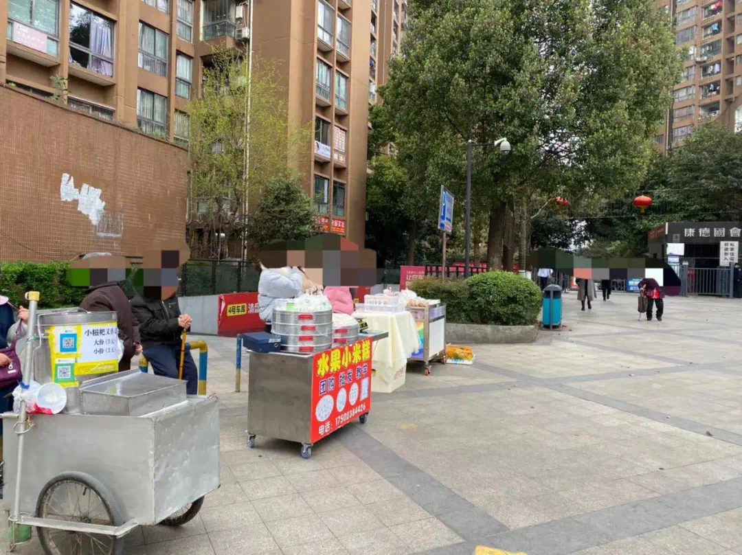 大门外还有各类小吃摊点,满足了“好吃狗”们的需求;