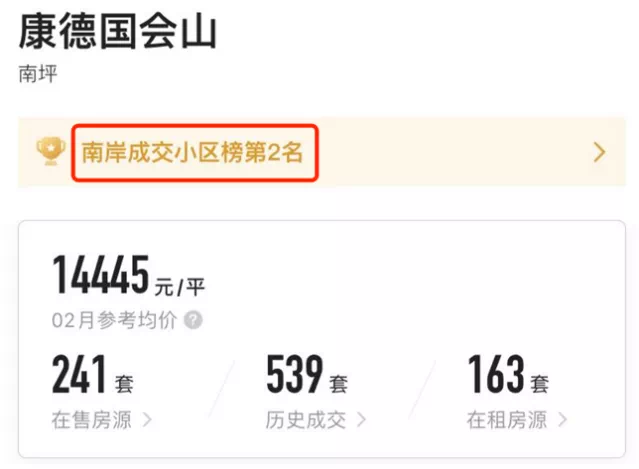 根据资料显示,康德国会山总户数约6466户,平均算下来一家三口,就是说这是一个容纳上万人的刚需大盘。根据链家显示,康德国会山还是南岸区成交小区排行榜的第二名,在二手房市场里非常热销。建面均价1.4w/平左右,套内均价1.7w/平左右。