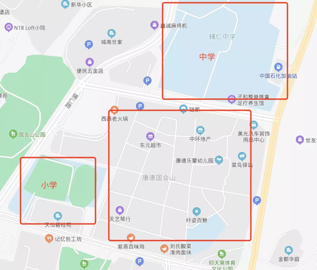 也就是说想要读学位紧张学校,需要提前3年落户才行,而南坪实验小学康德校区就属于学位紧张学校。并且小区一街之隔的地方外还有辅仁中学。