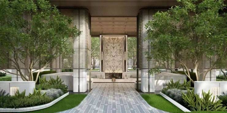 八重酒店式归家礼序,选用博物馆级环球石材,打造酒店式社区落客区;社区迎宾大堂(层高约9米);四季风雨连廊;单元豪华大堂;超配车库入口;车库地下豪华大堂;精装车马厅;臻享高定生活入户礼遇,塔尖圈层生活境界。