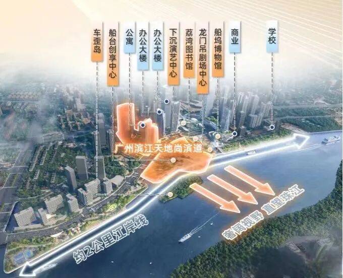 尚滨道位于项目配套最集中的区域上盖。船台1914的艺术、滨江公园的松弛、滨水商业的繁华、零距离亲江的步道,全都是下楼即享。而低密的楼栋布局,叠加与珠江250米的平均退距,则带来了顶级的江景视野。