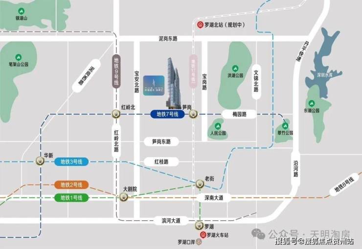 ⭕️地铁双轨:无缝接驳地铁7号线笋岗站D出口(已开通),地铁17号线笋岗站正在规划中,邻9号线红岭北站。