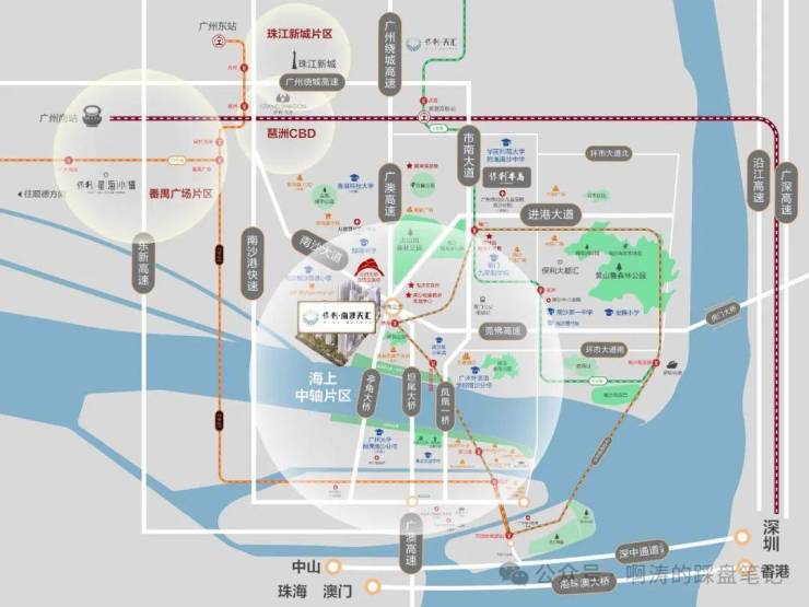 (3)高速:亭角大桥、广澳高速、南沙港高速,40分钟到广州市区、东莞,1小时内到深圳、佛山、珠海等珠三角城市;