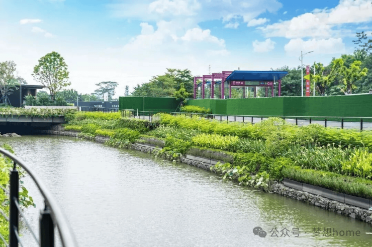 珑璟台西侧紧邻天然河涌,并沿途打造了开放式街角公园,流水潺潺,花草茂盛,更与社区园林无边界衔接,归家路上的景观不再扁平化,而是一步一景的万般惊喜。
