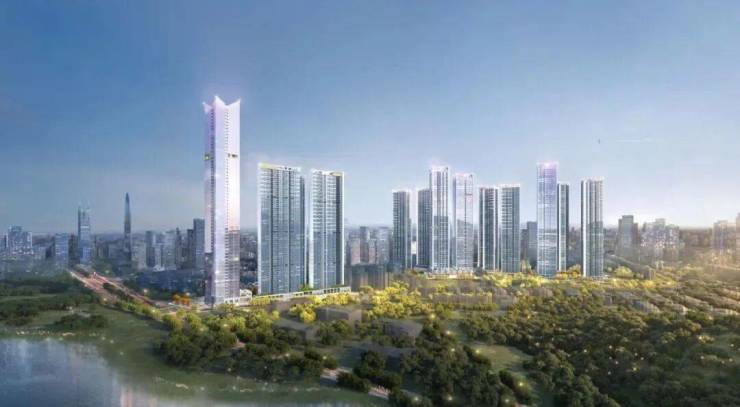 总占地面积约2.76万㎡,总建筑面积约40.3万㎡,计容建筑面积约31.3万㎡,容积率11.35,绿化率40.01%,共由3栋5座60F超高层住宅+1栋办公楼组成,其中1栋A1/A2座/1栋B1/B2座/1栋C座住宅60F,3栋办公楼62F,2栋是一所18班制幼儿园。